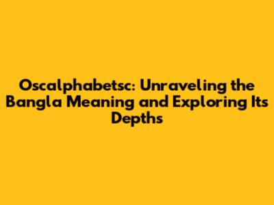 Decoding the Bangla Meaning of Oscalphabetsc: A Comprehensive Guide