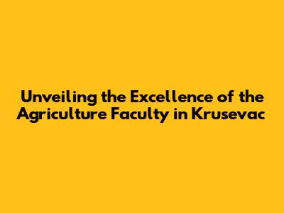 Unveiling The Excellence Of The Agriculture Faculty In Krusevac