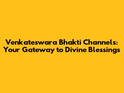 Venkateswara Bhakti Channels: Your Gateway To Divine Blessings