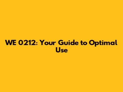 WE 0212: Your Guide To Optimal Use