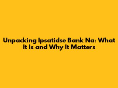 Why Understanding "Ipsatidse Bank Na" is Important