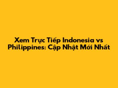 Xem Trực Tiếp Indonesia Vs Philippines: Cập Nhật Mới Nhất